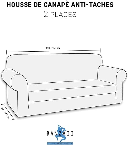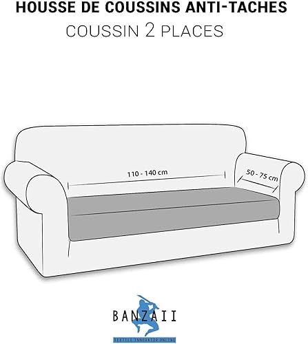 Banzaii Housse de Coussins Anti-Tache élastique Made in Italy 2 Coussins Extensible de 50 à 75 cm Blanc