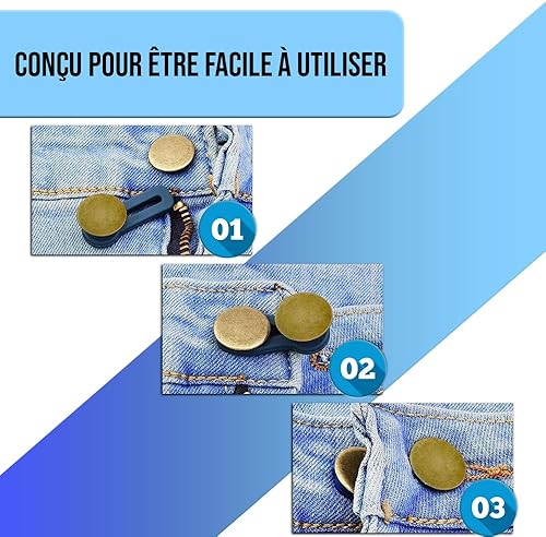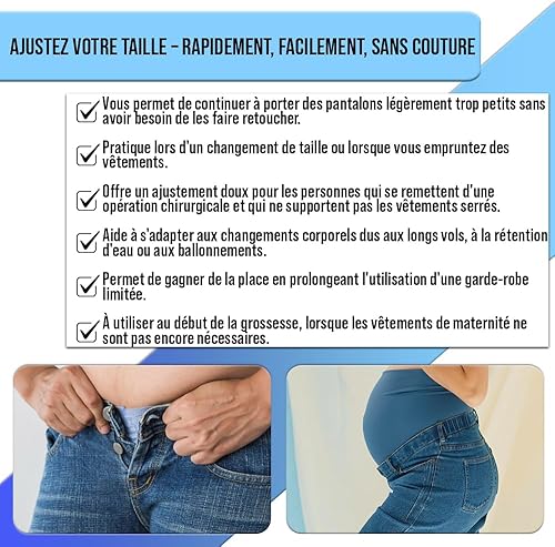 12 Pièces d'Extension de Bouton pour Pantalon - Extensions de Taille Flexibles - Expansion Instantanée de la Ceinture pour Hommes et Femmes - Aucune Couture Nécessaire - par Mobi Lock