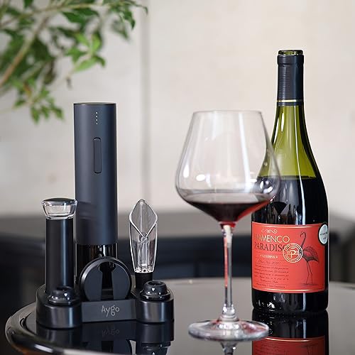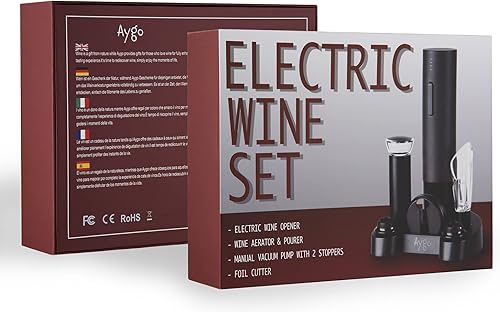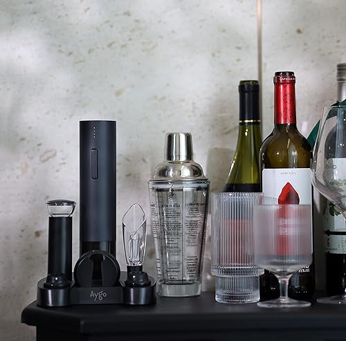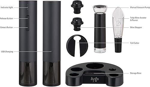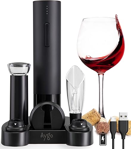 Aygo Tire bouchon electrique, ouvre bouteille electrique rechargeable 8 en 1, Cadeau Fete des Peres, avec coupe-capsule, aérateur de vin, pompe à vide, 2 bouchons, Cadeau ldéal pour amateurs de Vin.