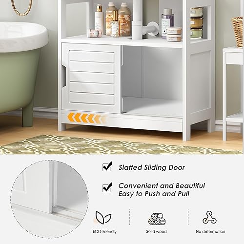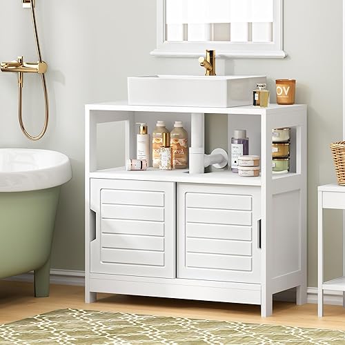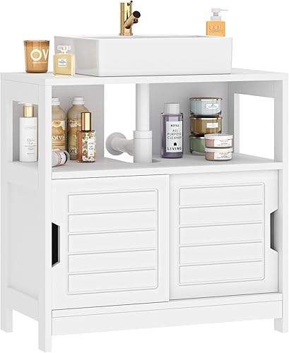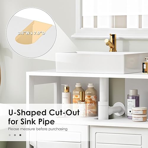 SogesPower Meuble sous Lavabo Blanc, Meuble de Rangement de Salle de Bain avec Portes et Étagères pour Lavabos sur Colonne avec Pieds, 60 x 30 x 60 cm