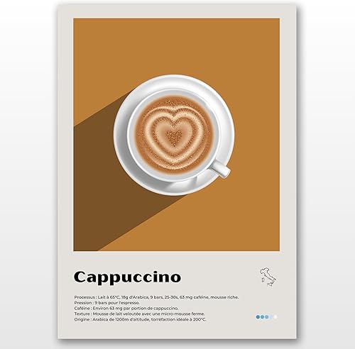 Pack de 3 Affiches Premium | Espresso, Cafe Latte, Cappuccino - Décoration murale pour cuisine moderne (30x40cm)