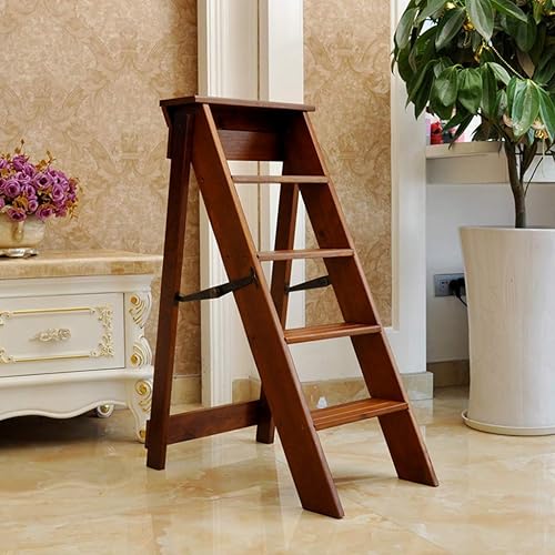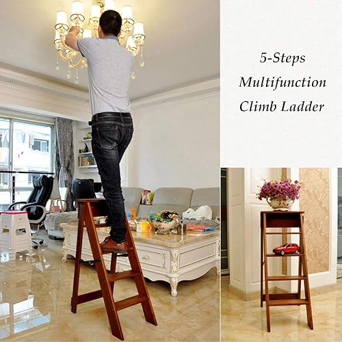 Chaise Pliante en Bois Échelles à 5 marches Tabouret Escabeau/Escabeau Multifonctionnel Chaise Échelle pour Cuisine/Bureau/bibliothèque