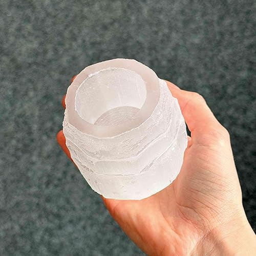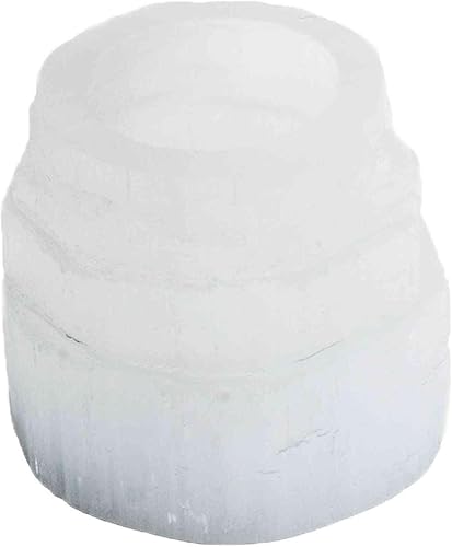NKlaus Photophore en sélénite 6 x 6 cm en forme graduée - Bougeoir en pierre naturelle blanche pour bougies chauffe-plat - Énergique et décoratif - Idée cadeau et décoration - 16665