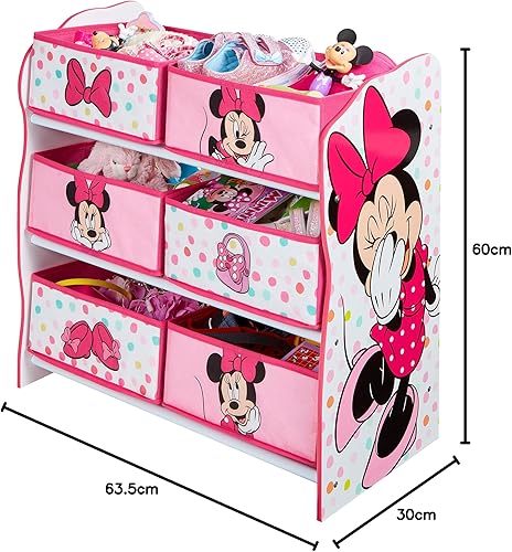 Worlds Apart Minnie Mouse - Meuble de rangement pour chambre d’enfant avec 6 bacs, 30 x 63.5 x 60 cm