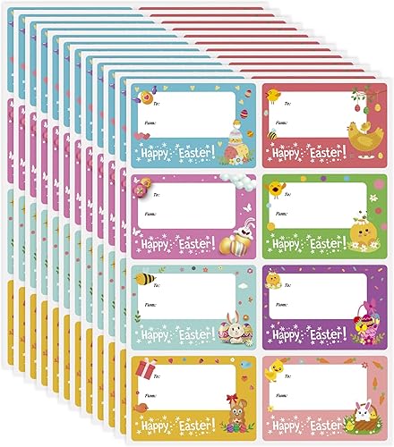 Lot de 96 étiquettes autocollantes pour cadeaux de Pâques, étiquettes autocollantes pour sacs cadeaux, enveloppes, cadeaux (multicolore - Pâques)