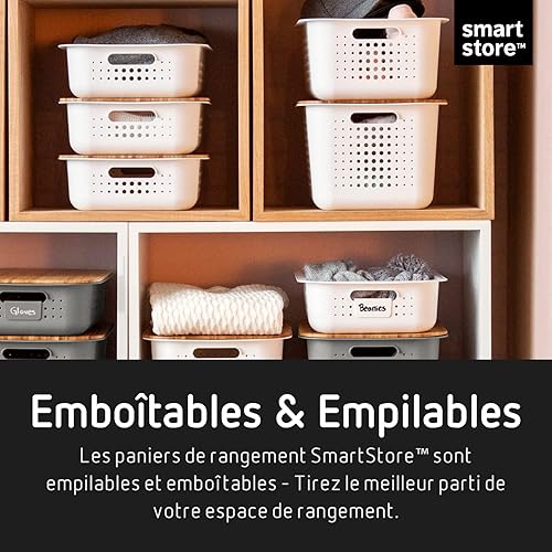SmartStore Panier de Rangement en Plastique Recyclé - Bac Sans Couvercle - Blanc - Emboîtable et Empilable - Garantie 10 ans - L 37 x l 28 x H 20 cm - 13L