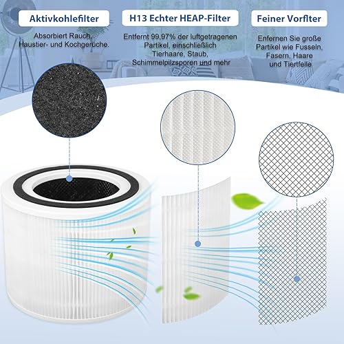 Lot de 2 filtres de rechange pour LEVOIT Core 300/300S - Filtre HEPA 3 en 1 True-H13 et filtre à charbon actif - Filtre Core 300-RF de rechange pour une purification optimale de l'air