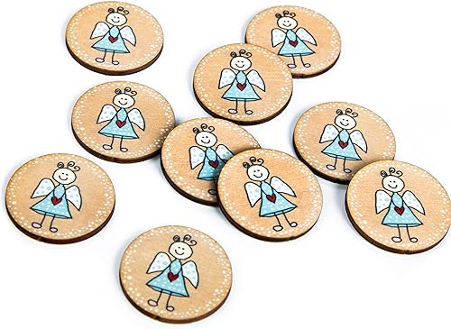 Logbuch-Verlag Lot de 10 petits anges gardiens en bois Ø 4 cm - Porte-bonheur plat rond - Décoration de table cadeau
