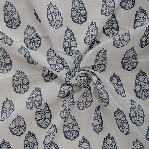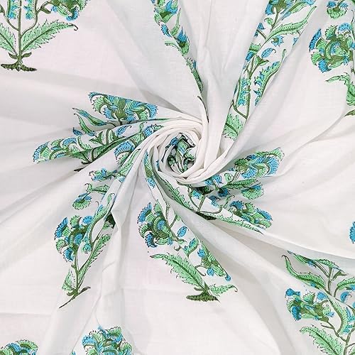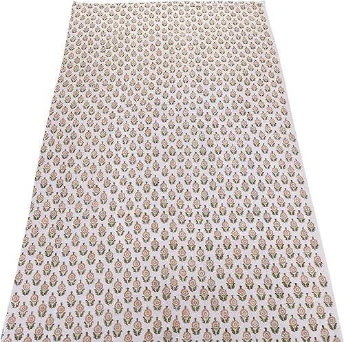 Trade Star Tissu de course 100% coton 3 m Tissu imprimé à la main pour la couture Tissu à coudre ethnique imprimé floral au mètre Beau tissu de couture fait à la main pour l'artisanat
