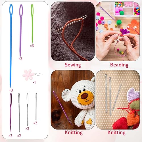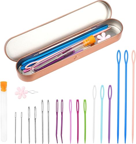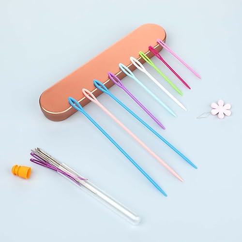 Dimeho Lot de 20 aiguilles à coudre en plastique à grand chas avec boîte de rangement - Aiguilles émoussées à gros chas - Aiguilles à tapisserie, aiguilles colorées pour laçage de sécurité, tricot,