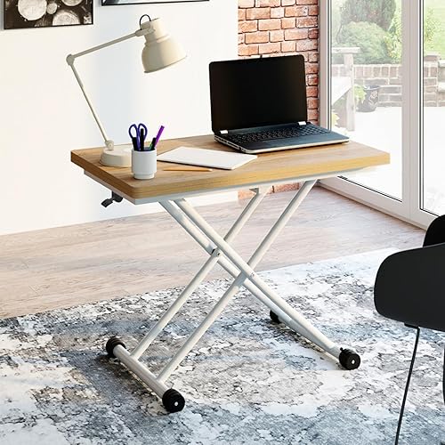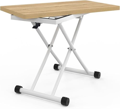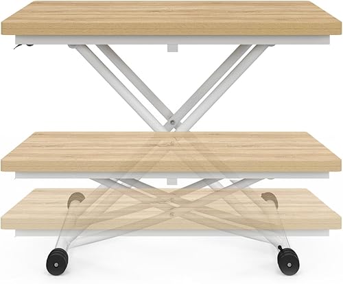 IDMarket - Table Basse Extensible relevable en Table à Manger rectangulaire Urbana Plateau façon hêtre Pied Blanc