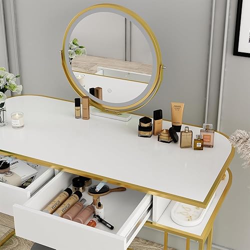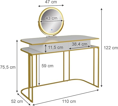Vicco Coiffeuse Tiara, Blanc/Or, 110 cm