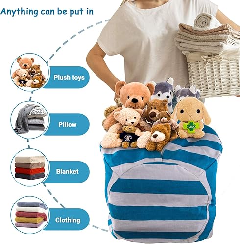 Sac Rangement Peluches Enfant, Peluche Sac Haricots Pouf, Pouf Poire de Rangement pour Peluches, Toile Sac Rangement Jouets avec Fermeture Éclair丨Grande Capacité 24Pouces丨pour Jouet Vêtement & Article