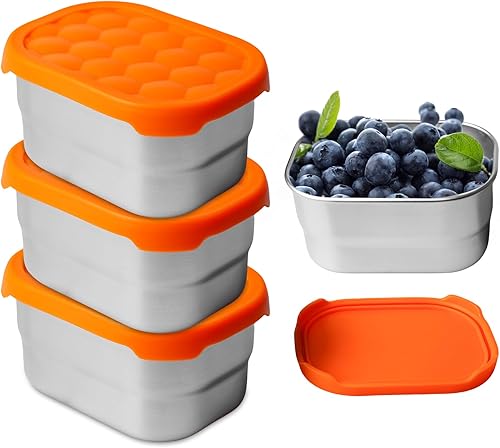 Lot de 3 boîtes à collation en acier inoxydable - 230 ml - Petite boîte à goûter - Petites boîtes avec couvercle en silicone - Anti-fuite - Petites boîtes pour collations, fruits, céréales