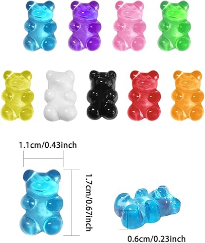 lyfLux Lot de 120 breloques en forme d'ours gélatine colorée à dos plat résine pour loisirs créatifs
