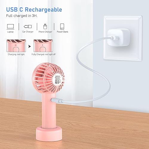 Blukar Ventilateur à Main, Ventilateur USB Rechargeable Portable Silencieux, Mini Ventilateur de Bureau Puissant 3 Vitesse & Longue Durée 4-12H, Ventilateur de Poche Personnel pour Bureau Voyage
