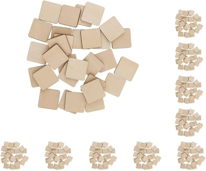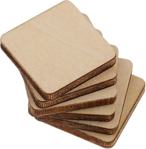 Lot de 10 carrés en bois vierge brut pour loisirs créatifs, peinture et pyrogravure (20 mm)