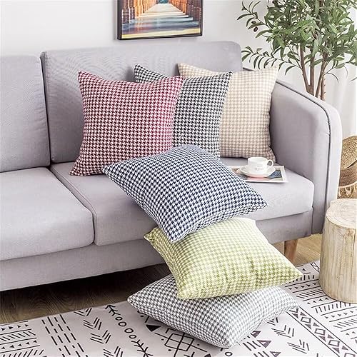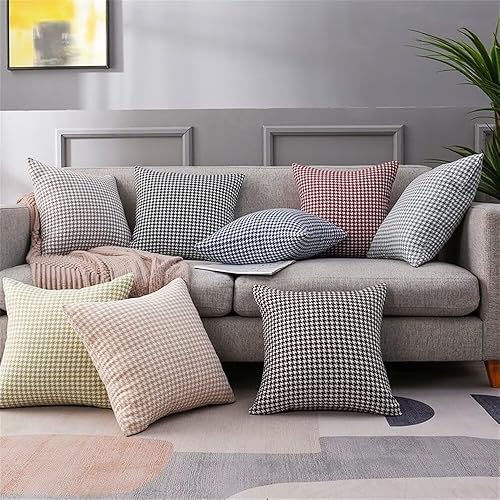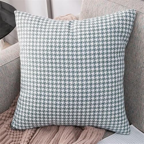Newliky Lot de 2 Taie d'oreiller 45x45 cm Pied-De-Poule Double Face Housse de Coussin Decoratif Rustique Classique Nordique Housse Coussin pour Sofa Salon Voiture Chambre Kaki