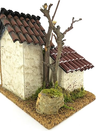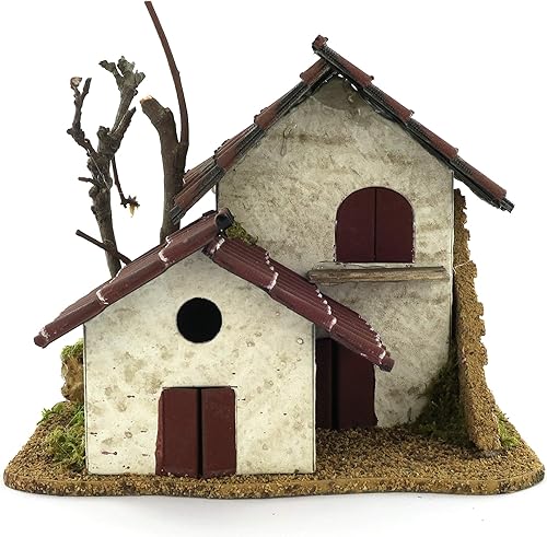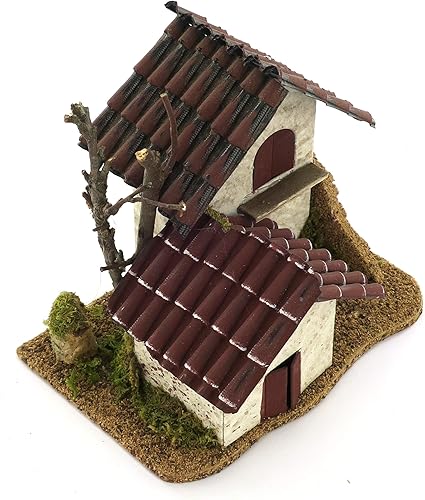 Ferrari & Arrighetti Double Maison pour crèche avec tégole Rouge, Bois et Carton, Multicolore, Dimensions indicatives : 15 x 14 x 10 cm