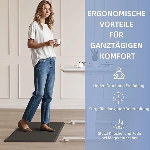 MUTUN Tapis de cuisine antidérapant anti-fatigue, 20 mm d'épaisseur, en mousse PVC imperméable, tapis de cuisine, de sol, marron, 44 x 152 cm