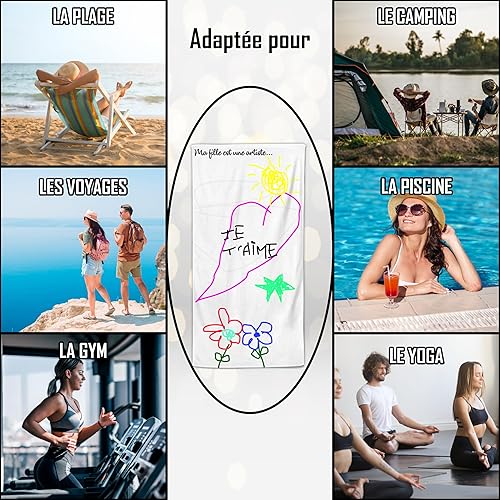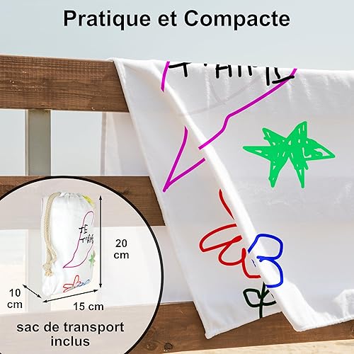 Serviette de Plage Microfibre Personnalisée avec Message Humoristique. Drap de Plage 160x80cm Ultra Absorbant, Séchage Rapide, Léger et Compact. Idée Cadeau Femme Homme Ado Anniversaire Noel