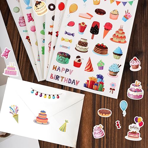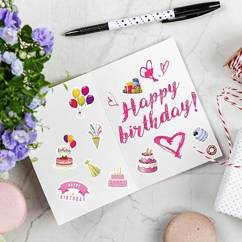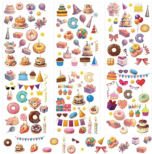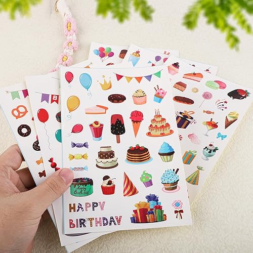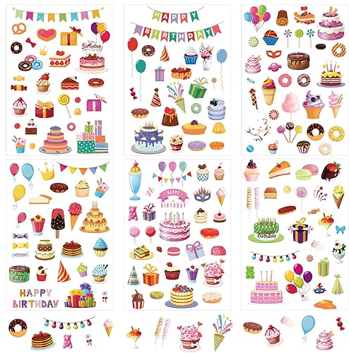 12 Sheets Happy Birthday Stickers, 6 Styles Birthday Scrapbook Stickers Colorful Birthday Stickers for Kids Birthday Decals for Envelope Party Favors Supplies (Style 1)