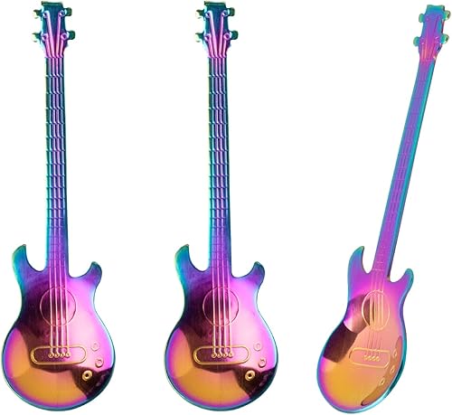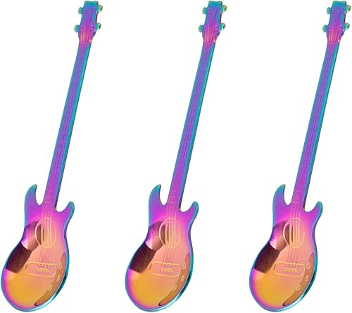 3 Pièces Cuillère Guitare Acier Inoxydable Cuillère à Guitare Illuminée Cuillère à Café Cuillère à Guitare Bar à Musique Pour les Boissons Lait les Desserts thé Crème Glacée