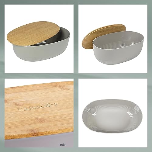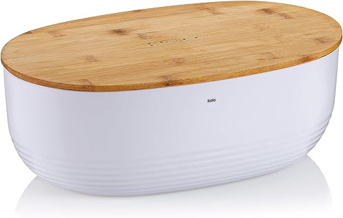 kela Boîte à pain blanche avec trous d'aération dans le couvercle en bambou 37,5x23x14cm, Boîte à pain en plastique, NAMUR, boîte de conservation du pain