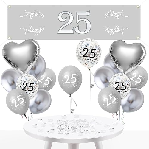 25 Anniversaire Argent - Décoration et Ballons pour Mariage - Deco pour Femme et Homme