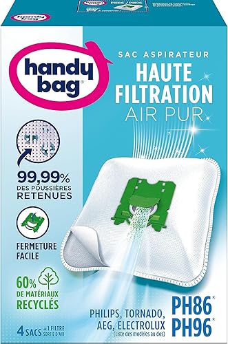 Melitta Handy Bag - PH86/PH96 - 4 Sacs Aspirateurs, pour Aspirateurs Philips, Electrolux, AEG et Tornado, Progress, Standard-Bag et Zanussi, Fermeture Hermétique, Filtre Anti-Allergène, Filtre Moteur