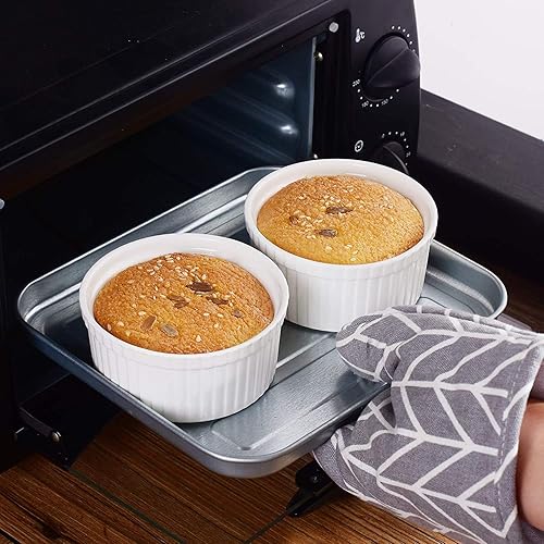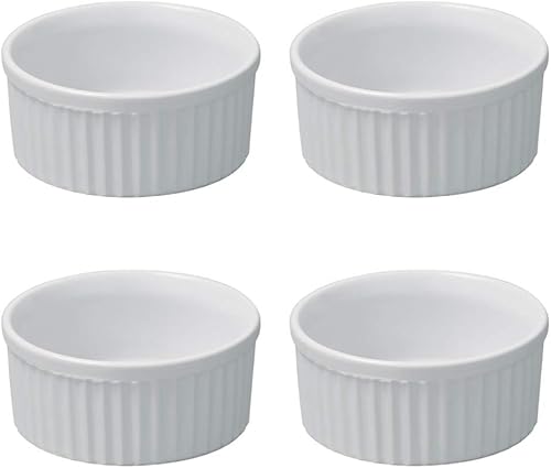 Petits Ramequins Moule verrines Blancs 9x4,5cm Lot de 4 Moules à soufflé pour Muffin pâtisseries Cupcake et crème brûlée Desserts en céramique résistant aux Fortes températures
