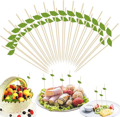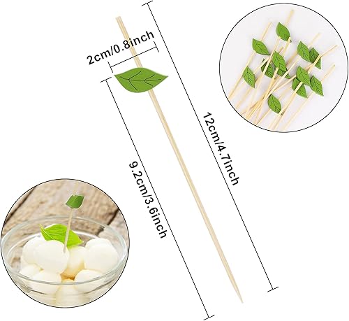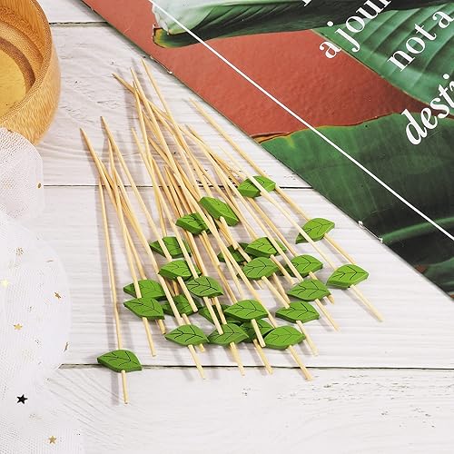 OOTSR 100 pcs Bambou Cocktail, 4,7 Pouces Feuille Verte Cure-Dents Sandwich Fruit Cure-Dents pour Apéritif Boisson Martini Fournitures Alimentaires Gâteau Fête Snack Décoratif