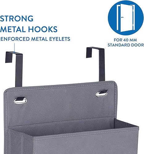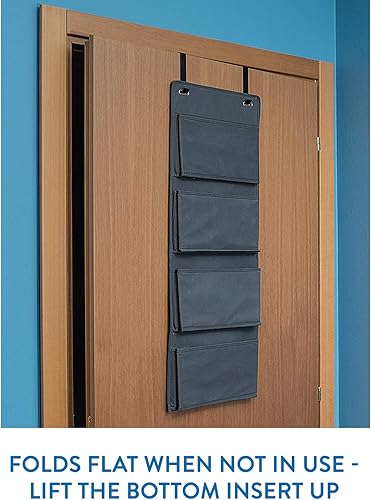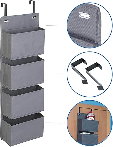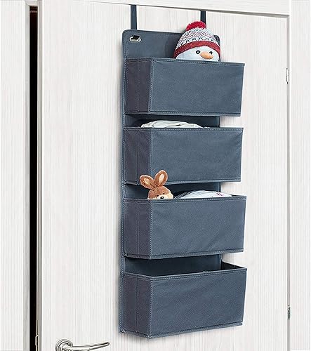 Tatkraft Cozy Etagère de Rangement, Organisateur en Tissu à Suspendre sur Les Portes et Murs, 4 Compartiments, Look Qualitatif et Elégant, Pose sans Percer ni Visser, Gris Foncé