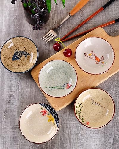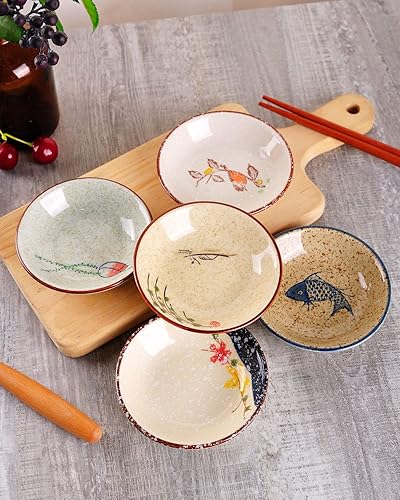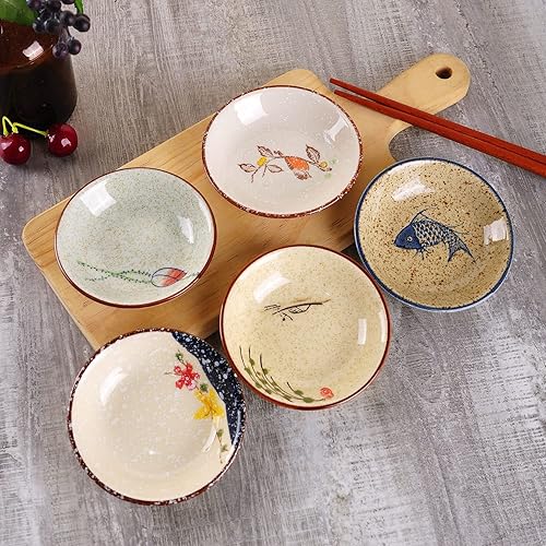 WHJY Lot de 5 assiettes en porcelaine japonaise rétro en céramique pour assaisonnement, sauce soja