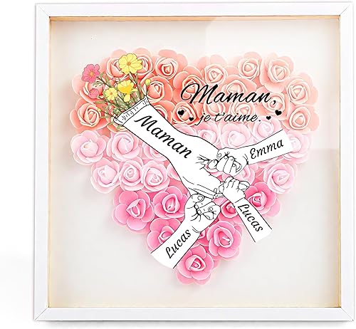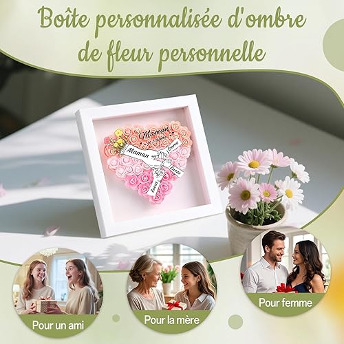 Boîte à Fleurs Personnalisée - Cadre Fete des Meres Personnalisé Peut Peut Imprimer Le Nom de l'enfant, Convient pour la Fête des Mères, Anniversaire, comme Cadeau pour des Meres ou Grand-Mère