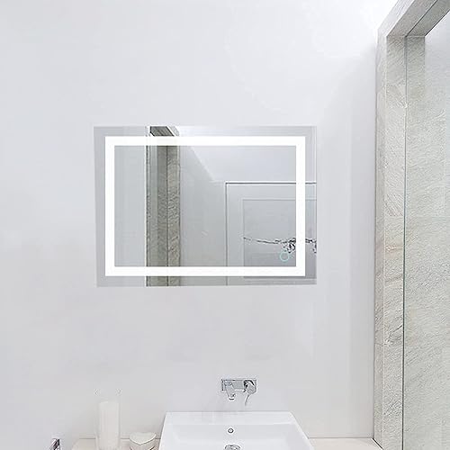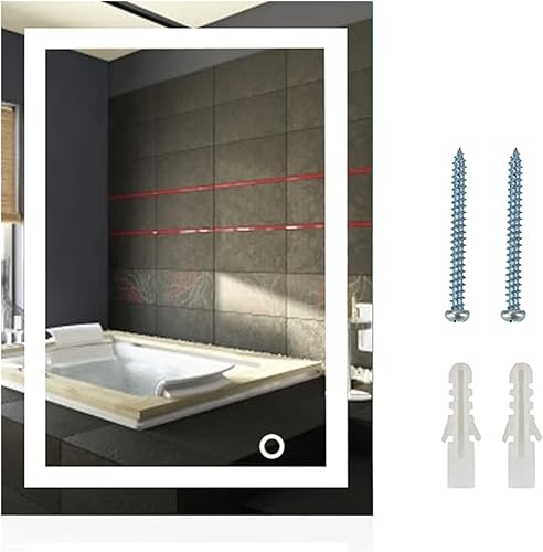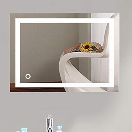Miroir de Salle de Bain LED,Miroir Cosmétiques,Petit Miroir Salle de Bain,Moderne Miroir avec LED Illumination Salle de Bain avec Accessoires,Miroir Mural Rectangulaire,Blanc froid/60 * 80cm