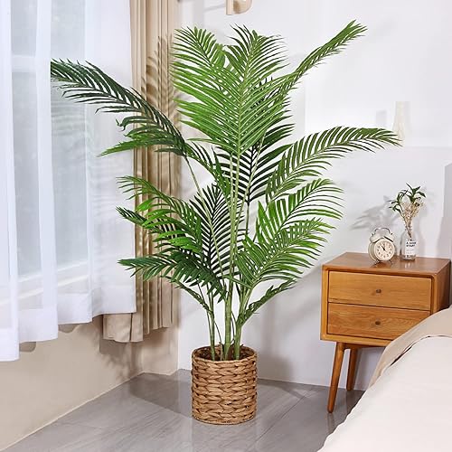 Fopamtri Plante Artificielle de Palmier d'arec 160 cm Faux Palmier 17 Plantes décoratives Modernes d'intérieur et d'extérieur en Pot Cadeau de Pendaison de crémaillère de Bureau à Domicile