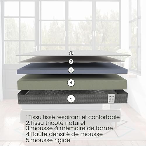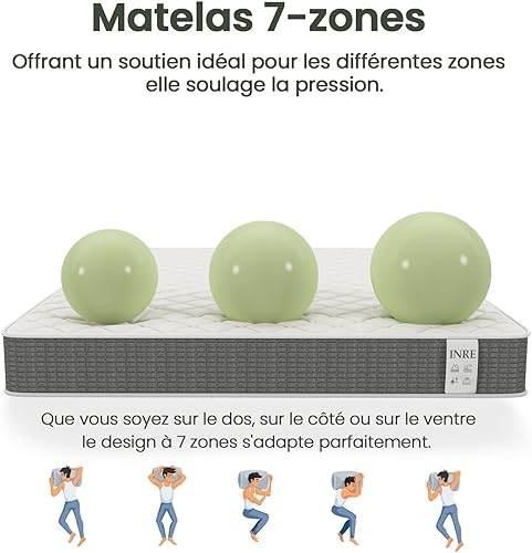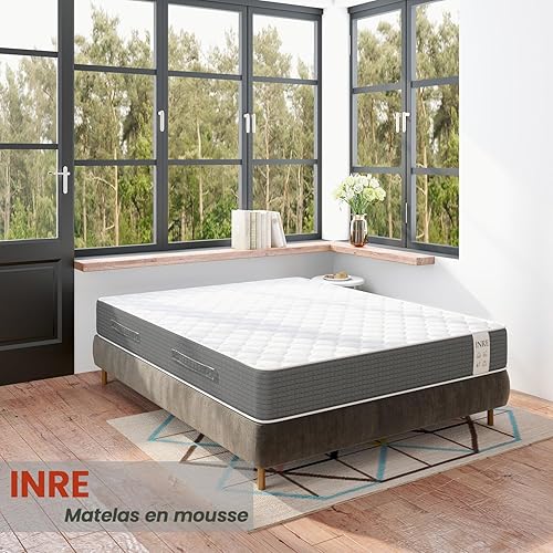 INRE Matelas 140x190, Épaisseur 25cm, Matelas en Mousse à Mémoire de Forme, Confort Équilibré, Soutien 7 Zones, Moelleux & Respirant, Hypoallergénique, Réversible à Deux Faces, Certifié Oeko-TEX