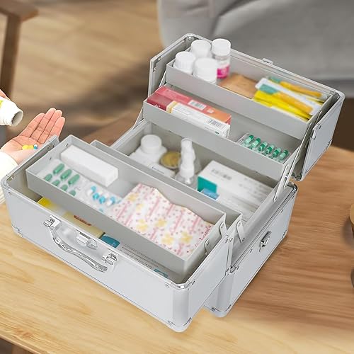 Boite Medicaments Rangement, boite a Medicament,boîte Médicale à Double Ouverture, boîte de Verrouillage pour Médicaments avec clé, boîte de Rangement pour Médicaments Multicouche Familiale de Grande