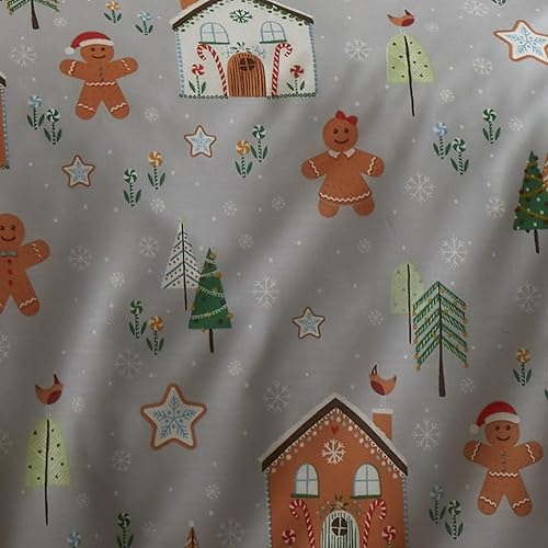 Bedlam - Housse de Couette Maison en Pain d'épice de Noël - Lit Simple (140 x 200 cm) - Réversible (2 Couleurs) - 1 taie d'oreiller - Housse de Couette Bonhomme en Pain d'épices - Literie de Noël