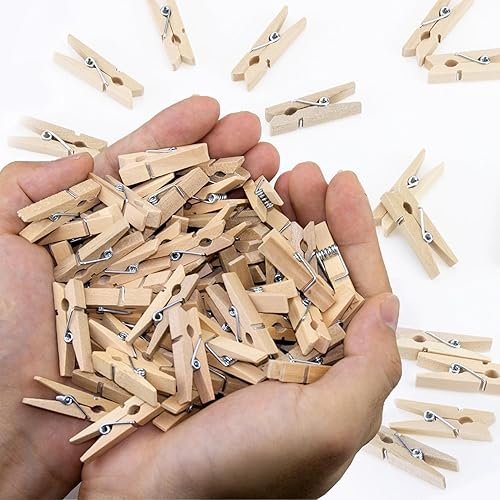 LOMIMOS 100 Pièces Mini Pinces de 3cm en Bois Cannelle, Petite Pinces en Bois Original Multi Usage pour Polaroid Photo Décorer La Chambre, Travaux Manuels, Cartes Postales