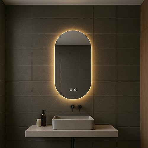 Bayt Miroir de salle de bain - Miroir mural ovale avec éclairage - Anti-buée - 2 modes d'éclairage - 50 x 90 cm - Blanc