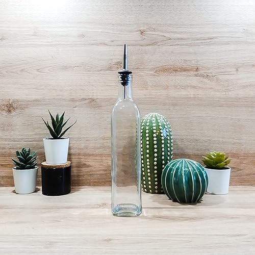 Minimalist Bouteille en Verre Distributeur d'Huile d'olive et de Vinaigre avec Bec Verseur - 500 ML - Transparent