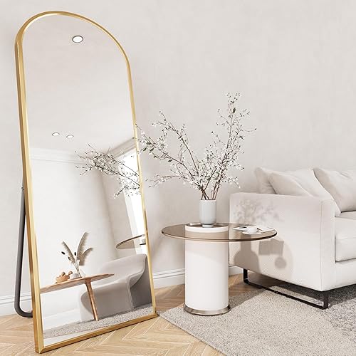 SDXYSTCE Miroir de sol bombé - Grand miroir pleine longueur - 165 x 60 cm - Avec support - Doré - Convient pour chambre à coucher, salon
