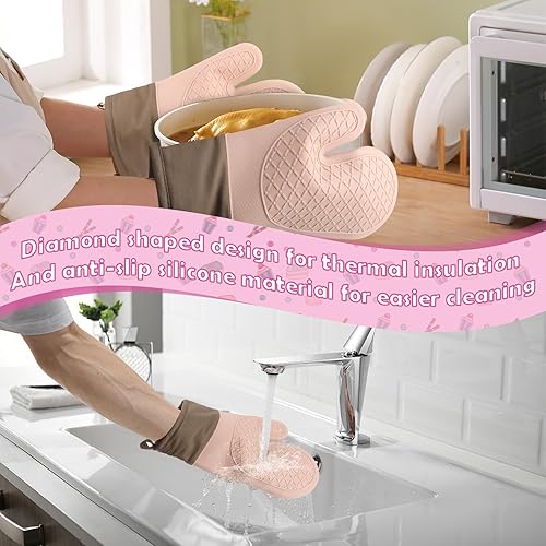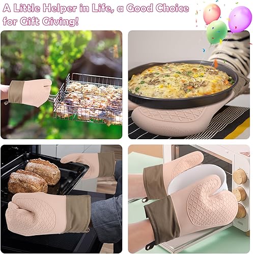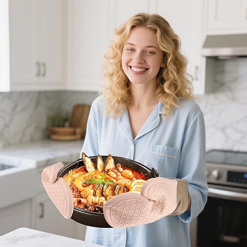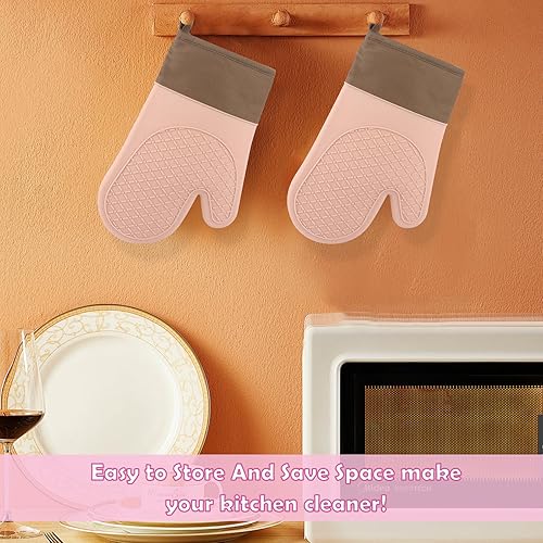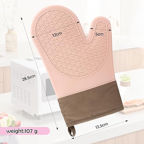 2PCS Gant Cuisine, Gants de Cuisine Une Surface Antidérapante en Silicone, Intérieur en Coton, Gants Cuisine Résistant à la Chaleur,Gant pour Four de Cuisine