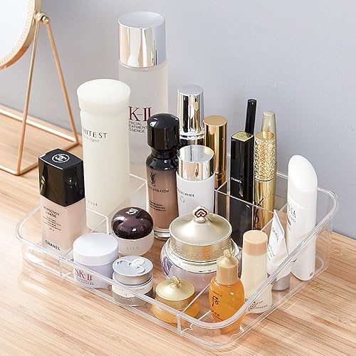 Organisateur de Maquillage, Bijoux Support D'écran Cosmétique avec 8 Compartiments de Rangement, Crystal Clear Porte-Pinceau à Maquillage pour Tiroirs de Salle de Bains de Comptoir Vanity