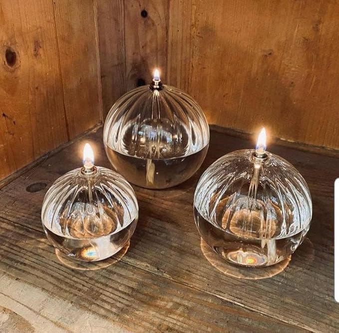 Lampe à huile verre strié transparent Sphère M