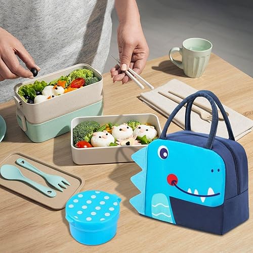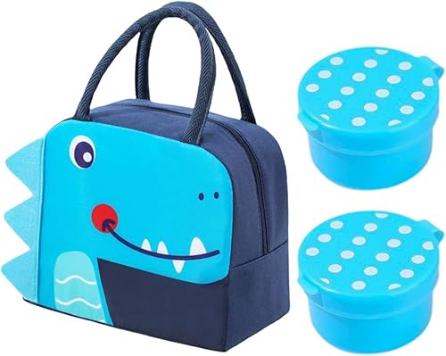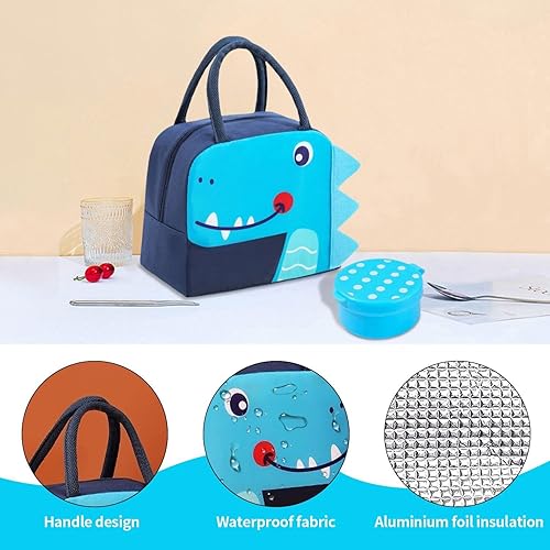 Sac De Boîte À Déjeuner En Forme De Crocodile De Dessin Animé 1 Pièce Et 2 Récipients À Sauce, Sac De Boîte À Déjeuner Mignon Pour Enfants, Sac À Déjeuner Étanche