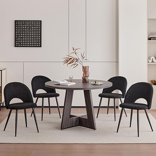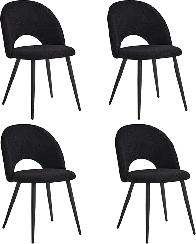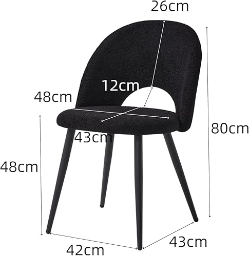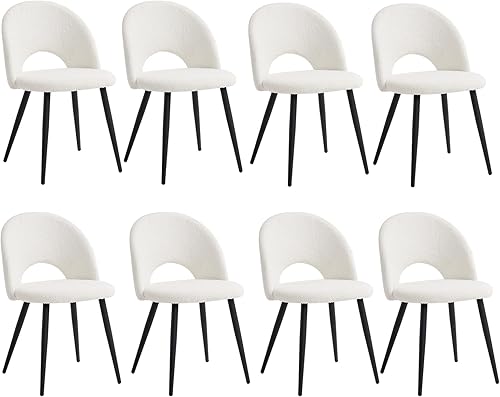 JZGORC Lot de 4 Chaise de Salle à Manger, Chaise de Salle à Manger Teddy en Velours Doux, Chaise de Cuisine avec Siège Moelleux et Accoudoirs, Pieds en Métal - Blanc