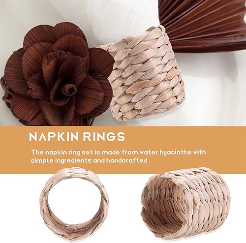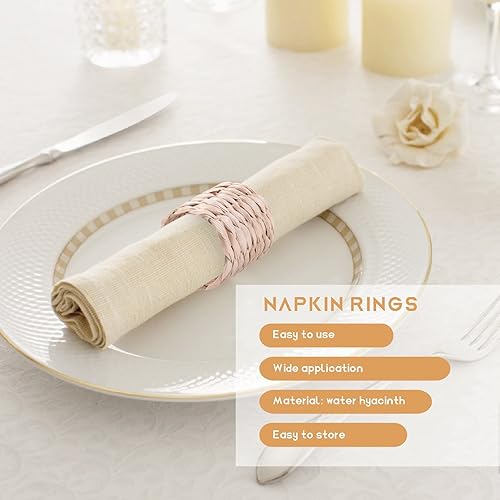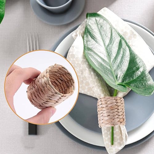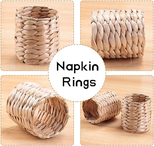 Kopinma 12 Pcs Ronds de Serviette bohème, Ronds de Serviette rustiques tissés à la Main en Jacinthe d'eau Naturelle pour Saint-Valentin, Thanksgiving, fête d'anniversaire, décoration de Table